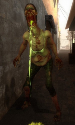Spitterの体力は 100 と少ないので、きちんと射撃すればすぐに倒すことができるだろう。ただ、Spitterは一度つばを吐くと素早く逃げまわる上、自身が倒された時もその足元に酸性液をまき散らすので、そこでダメージを受けないよう注意すること。なお、Spitterは移動中常に口から酸性液を地面に垂らしている*2ため、その跡を追っていくことでも発見することができる。